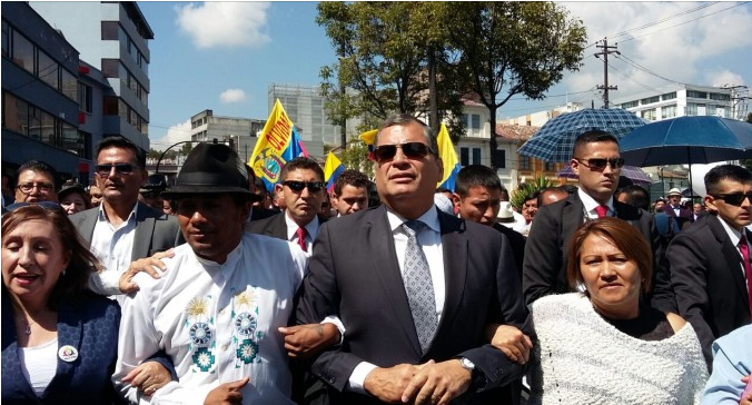 El presidente Rafael Correa defendió su propuesta de consulta popular para impedir que los funcionarios públicos y las autoridades electas ejerzan sus cargos si tienen bienes o fondos en paraísos fiscales. Lo hizo en la Corte Constitucional a la que llegó acompañado por grupos sociales y legisladores.