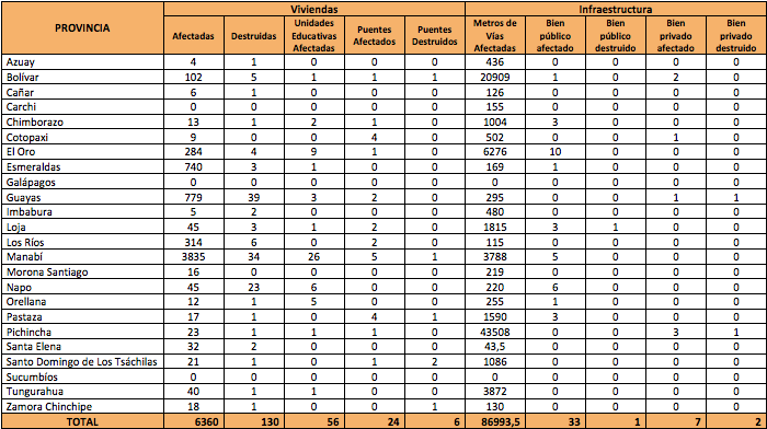 Hasta el momento, el invierno ha causado 16 fallecidos y más de 6.600 familias afectadas, dice el informe. Una de las provincias con más daños es Cotopaxi. En esta provincia se han presentado de enero al 18 de marzo, 14 eventos adversos por las lluvias, siete de ellos son deslizamientos.