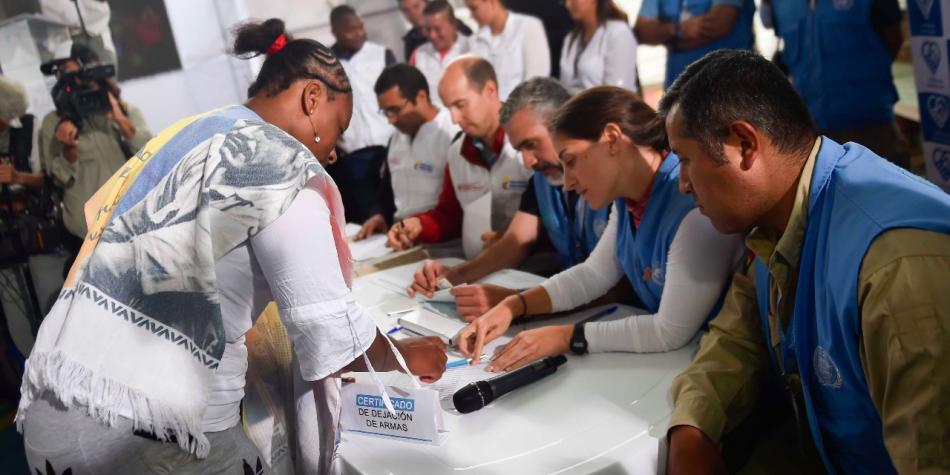 Los guerrilleros entregaron las armas a la misión de observación de Naciones Unidas, responsable del inventario y del almacenamiento de fusiles, pistolas, lanzagranadas y lanzacohetes. Tanto el Gobierno de Juan Manuel Santos como la insurgencia no habían dudado en la necesidad de cumplir con lo pactado durante cuatro años de conversaciones en La Habana. No obstante, las diferencias entre las partes giraban en torno al alcance simbólico de una fotografía. Las FARC querían evitar la imagen de la entrega de armas, lo que hubiera podido transmitir la idea de una rendición.