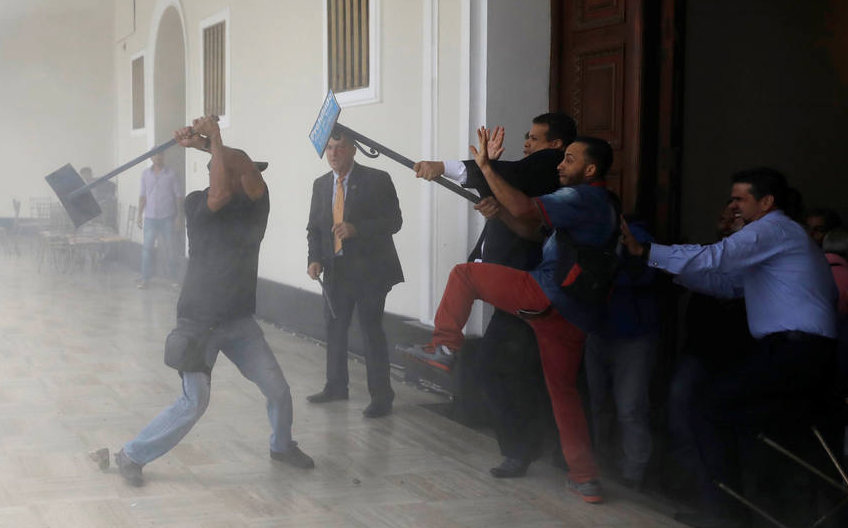 Los grupos de choque del chavismo irrumpieron el miércoles en la sede de la Asamblea Nacional (AN) de Venezuela, controlada por la oposición, para agredir a los diputados y visitantes que en ese momento asistían a una sesión solemne en conmemoración de los 206 años de la declaración de independencia del país suramericano.