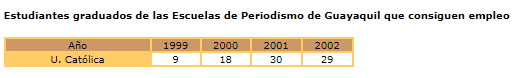 Sin embargo, las estadísticas sobre conseguir empleo para un graduado de la Universidad Católica de Santiago de Guayaquil, en la carrera de Comunicación Social, son altas a diferencia de otras universidades.