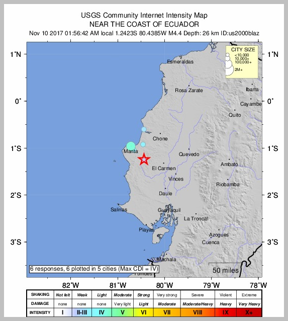La UTPL cita el reporte del Servicio Geológico de los Estados Unidos. El Instituto Geofísico había reportado que el sismo tuvo una magnitud de 4,7 grados. Once minutos antes, a las 01:45, ocurrió otro con una magnitud de 3,5 grados, a una profundidad de 8,81 kilómetros, cerca de la población de Montecristi.