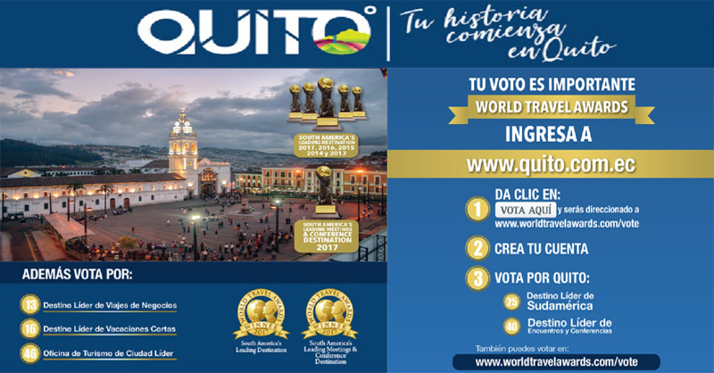 La capital ecuatoriana ha sido reconocida durante cinco años consecutivos como Destino Líder de Sudamérica y en 2017 como Destino Líder de Reuniones, Conferencias y Eventos. Quito es una ciudad multifacética, con riqueza natural, arquitectónica, cultural, patrimonial y gastronómica, que está dando pasos firmes en el desarrollo turístico.