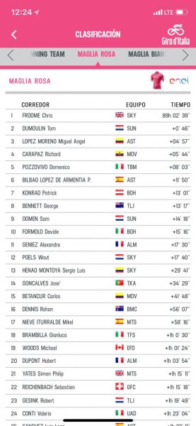 El carchanse, Richard Carapaz quedó finalmente en el cuarto en la clasificación general del Giro de Italia 2018, un triunfo histórico en la historia del ciclismo ecuatoriano. El pedalista ecuatoriano, del equipo español de Movistar, confirmó su buen momento al quedar cuarto en la clasificación general del Giro 101 de Italia.