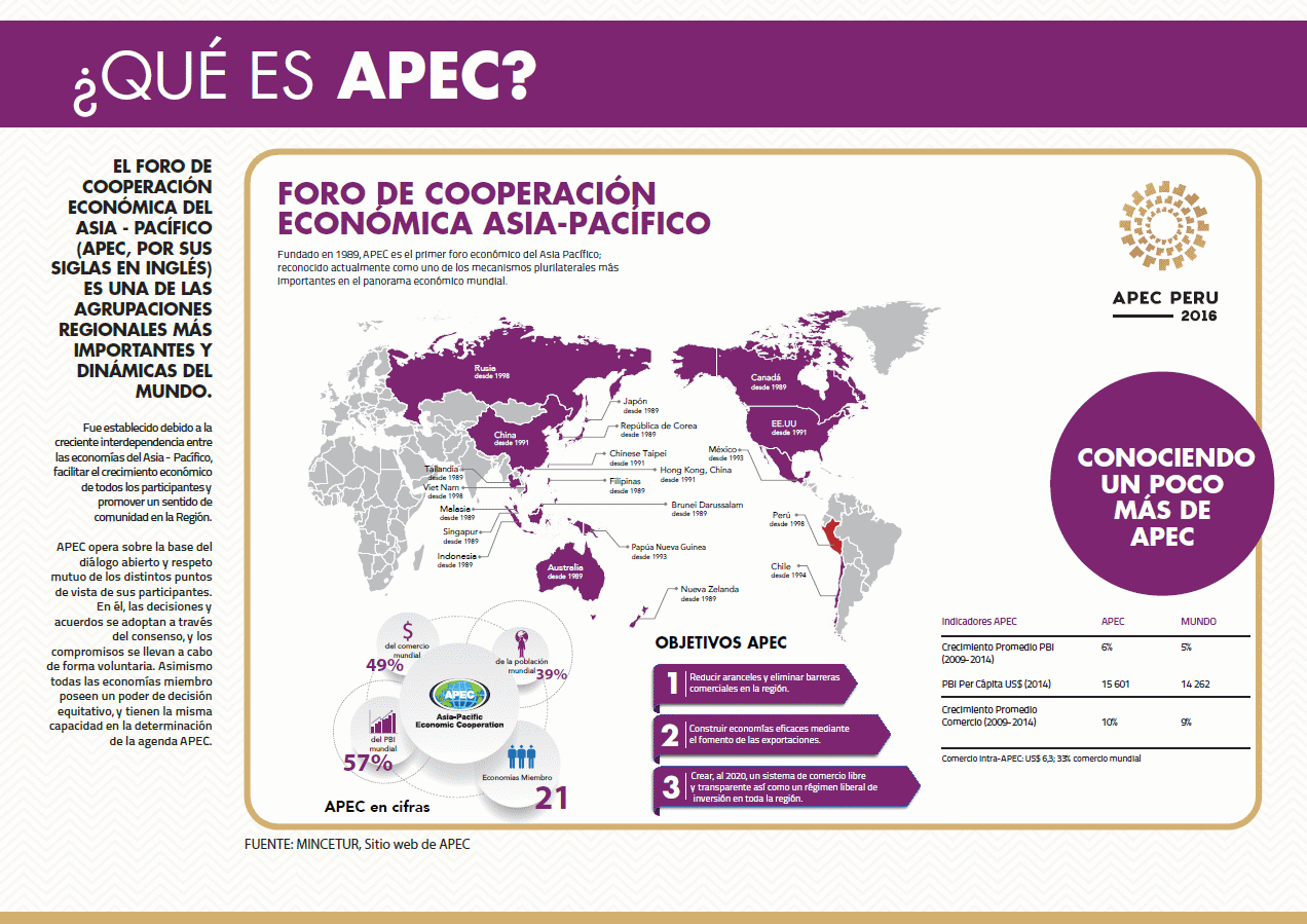 En ese Foro están países que buscan promover la inversión para diversificar exportaciones, abrir mercados y generar crecimiento y desarrollo económico. La Cuenca del Pacífico junta a las mayores economías del mundo que crecieron por su comercio exterior.