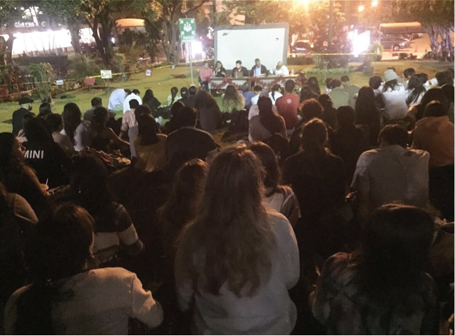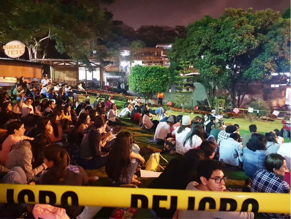 Llegué temprano al evento MAYO 1968. El eco de la resistencia, por lo que alcancé a comprar en una pequeña feria contigua al foro un par de libros de la colección ORBIS y un número singular de LATINOAmérica[i]. La conversación inició puntualmente en el lugar asignado al evento, un espacio cercano a la Facultad de Filosofía de la Universidad Católica de Santiago de Guayaquil. En el ínterin escuché que ingresar al “Área verde”, era entrar a “la escena del crimen”; esto en tanto que, había que pasar un cerco de cinta amarilla con letras negras a lo CSI. Nadie lo atravesó porque la cinta no estaba rota, sólo se lo evadía. Era un simulacro de prohibición para acceder a la conversación. Adentro había una mesa y sillas para los expositores; un público numeroso, en su mayoría juvenil acomodado en el césped; y afuera, algunas sillas y más personas interesadas en la charla.