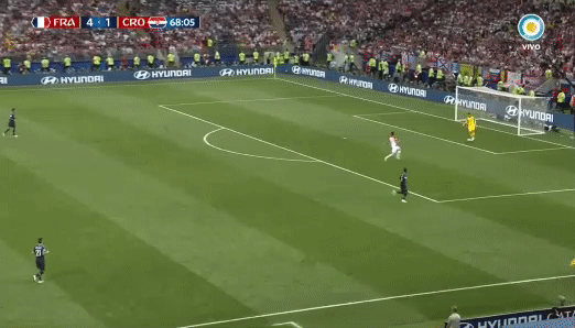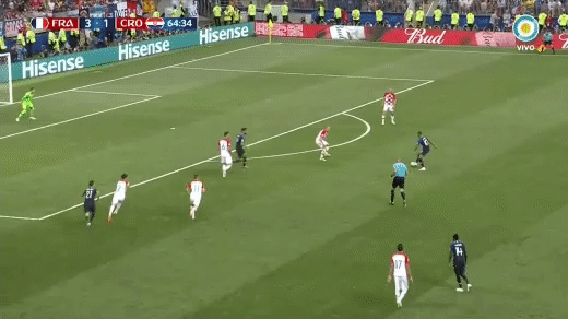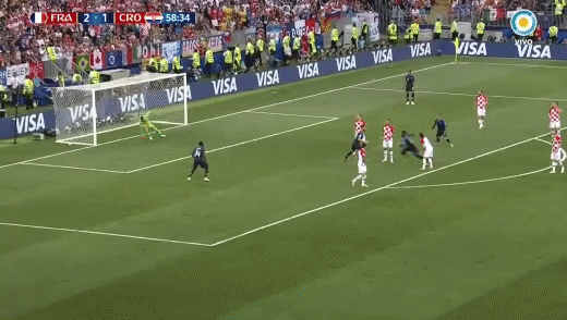 Tras una galopada de Mbappé por la derecha el balón cayó en los dominios de Pogba que con su pierna izquierda colocó el balón suavemente en costado derecho de la portería de Subasic.
