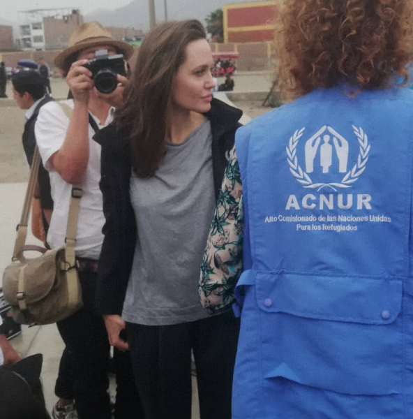 La artista, quien es enviada especial de Acnur, realiza frecuentemente visitas a zonas de conflictos y áreas con problemáticas de refugiados.