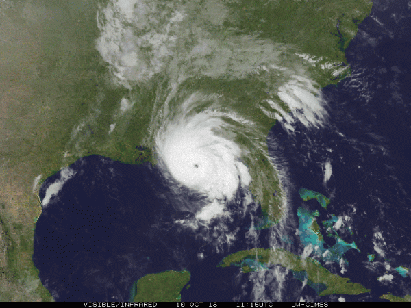 Los vientos aumentarán constantemente a lo largo del día y podrían exceder los 160 kilómetros por hora. Árboles y líneas de servicios públicos serán derribados. Para el jueves, Michael se aleja del Panhandle y el cielo está despejado. La tormenta se retira por la noche del jueves.