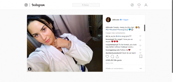 En la foto se observa a la cantante sin una gota de maquillaje, y al parecer -luciendo un traje de Jiu-jitsu y su cinturón azul. Imagen que indicaría que la joven de 26 años se está dedicada a recuperarse mental y físicamente, por lo que estaría practicando dicho deporte.