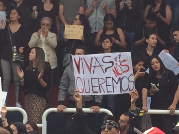 La Tribuna de los Shyris es escenario de plantón #TodosSomosMartha en respuesta a la violación grupal que sufrió Martha de 35 años, en un bar de Quito y el femicidio de Diana, ocurrido este sábado 19 de enero del 2019, en Ibarra.