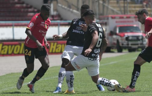 Pero el lateral fue derribado por Ángelo Preciado dentro del área. El árbitro Guerrero dictaminó infracción penal y Raúl Becerra con un remate de pierna diestra y cruzado, venció al golero Hamilton Piedra para anotar el empate transitorio para el conjunto morlaco. Pero al 41’ Independiente respondió con una vistosa jugada entre Anthony Landázuri y Alejandro Cabeza.