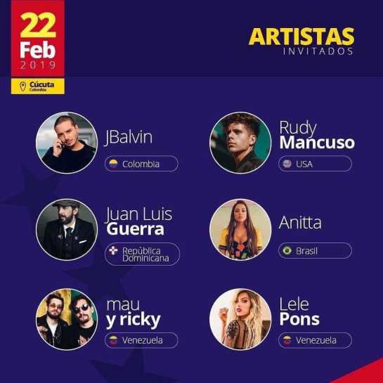 22 de febrero en Cúcuta: acompáñanos a @montanertwiter y un grupo de artistas comprometidos a ayudar a la crisis humanitaria de Venezuela. Tu oportunidad de unirte a la causa y hacer que las estrellas brillen para todos. ????