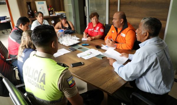 El encuentro fue convocado por el alcalde Antonio Hernández y asisten representantes de Policía Nacional, Cruz Roja cantonal, Jefa Política del cantón, jefe de Cuerpo de Bomberos, directores municipales de higiene y planificación, técnica de acción social y desarrollo productivo y de comunicación.