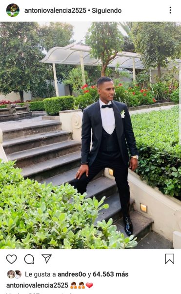Valencia, que ha militado en grandes equipos europeos, como el Manchester United inglés, vistió de gala para la ceremonia religiosa que tuvo lugar la tarde del sábado 6 de julio del 2019 en la iglesia de San Francisco, en el casco colonial de Quito.