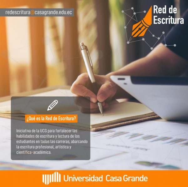 Con el propósito de desarrollar las habilidades de lectura y escritura en los estudiantes, la Universidad Casa Grande ha implementado la Red de Escritura como un mecanismo de apoyo. Esta iniciativa se desprende del “Programa Leer y Escribir en la universidad: un asunto de todos”, desarrollado en esta institución desde 2017 bajo la dirección de Paula Carlino, autora del libro “Escribir, leer y aprender en la Universidad” y que tiene por objetivo impactar, a mediano plazo, en la cultura institucional para consolidar el uso transversal de la lecto-escritura como herramienta de aprendizaje. En este marco, logramos concebir un nuevo formato para repotenciar las prácticas y estrategias que veníamos utilizando en este sentido.