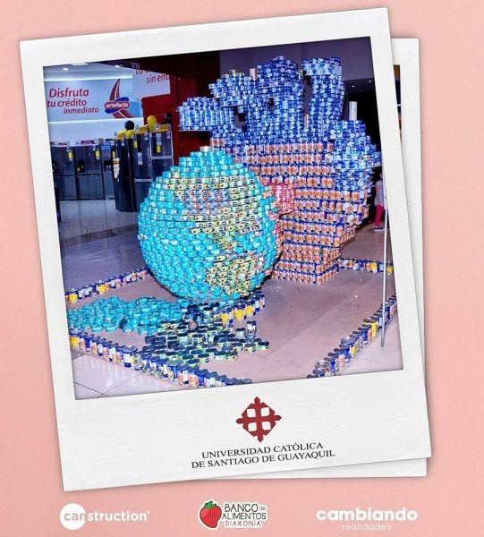 Canstruction Universidades 2019 es organizado por el Banco de Alimentos Diakonía de Guayaquil y es parte de la obra social de la Pastoral Cáritas de la Arquidiócesis de esta ciudad, cuyo objetivo principal es recopilar alimentos enlatados no perecibles para las personas más vulnerables, por eso el lema de este año es Hambre y Cambio Climático.