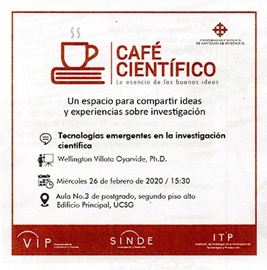 El Café Científico, como se ha denominado a este encuentro, surgió desde fines de 2018 como iniciativa del Vicerrectorado de Investigación y Posgrado, el Subsistema de Investigación y Desarrollo (SINDE) y los Institutos de Investigación e Innovación de la UCSG.