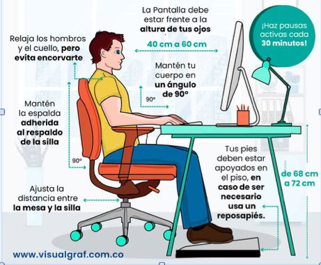 Con esta nueva realidad se han realizado todos estos cambios, pero sin la silla con reposabrazos y respaldo correcto, sin el escritorio ergonómico y él apoya pies adecuado, la presencia de molestias físicas era cuestión de tiempo en presentarse.