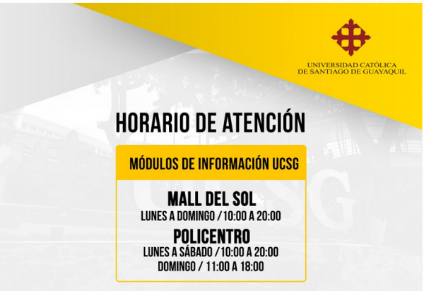 desea conocer la oferta académica o recibir atención personalizada de los servicios de la #UCSG, puede visitarlos en dos módulos de información en el CC Mall del Sol y Policentro.