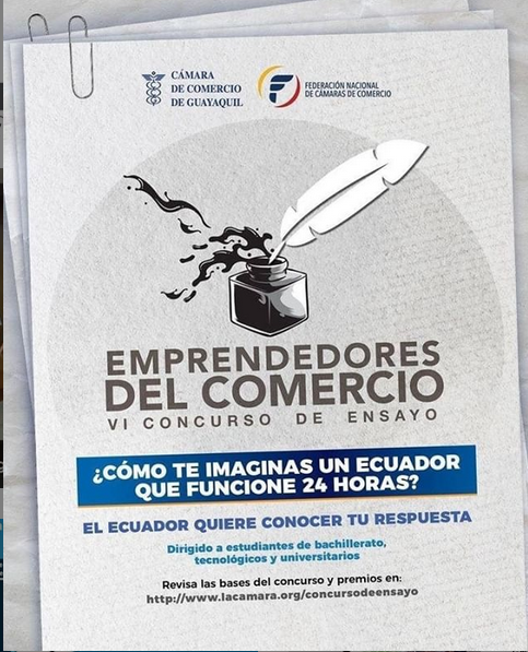 La Cámara de Comercio de Guayaquil invita a los estudiantes de la #UCSG a participar del concurso de ensayo “𝗘𝗺𝗽𝗿𝗲𝗻𝗱𝗲𝗱𝗼𝗿𝗲𝘀 𝗱𝗲𝗹 𝗖𝗼𝗺𝗲𝗿𝗰𝗶𝗼” como una oportunidad de generar un espacio de expresión. 🤗