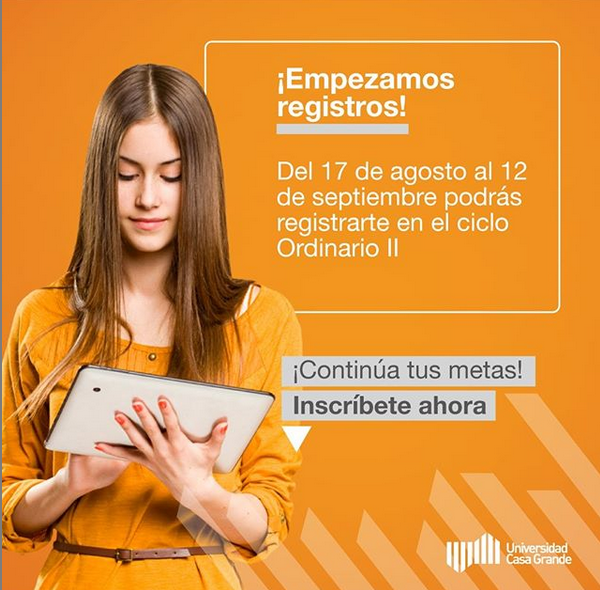 Tus metas son nuestra prioridad. Empezamos el ciclo ordinario II online el 14 de septiembre. El registro ordinario es desde el 17 de agosto hasta el 12 de septiembre.