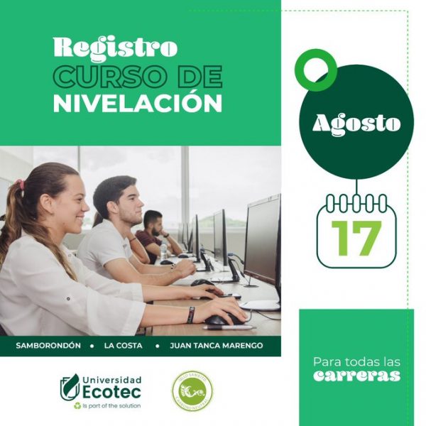Desde este lunes 17 la Universidad Ecotec inicia su curso de nivelación para todas las carreras en sus tres campus, Samborondón, La Costa y Juan Tanca Marengo.