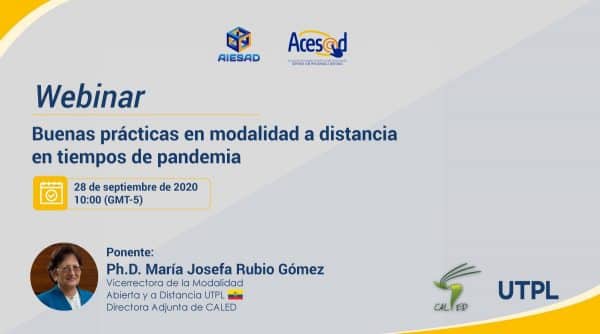 Este lunes 28 de septiembre la Universidad Técnica Particular de Loja (UTPL) en conjunto con la Asociación Iberoamericana de Educación Superior a Distancia (AIESAD) y La Asociación Colombiana de Instituciones de Educación Superior con Programas a Distancia (ACESAD) realizará la conferencia sobre las buenas prácticas en modalidad a distancia durante la pandemia.
