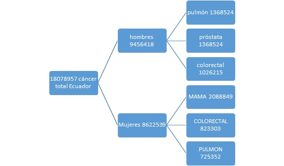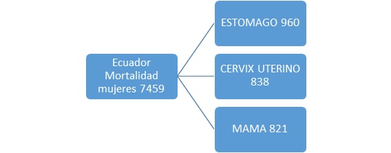 En Ecuador hubo 28 058 casos de cáncer de los cuales 15276 fueron mujeres siendo la primera causa el cáncer de mama con 2787 y una mortalidad de 821 casos.