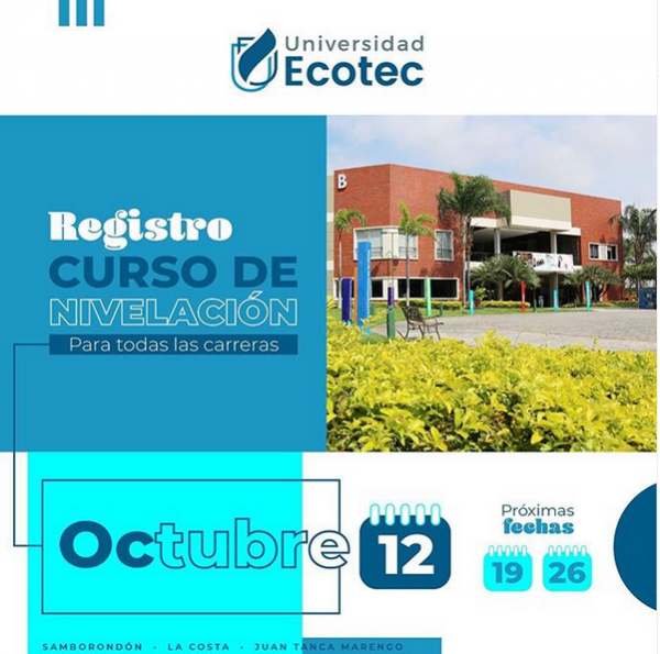 La Universidad Ecotec invita a la comunidad a registrarse en sus cursos de nivelación que inician todos los lunes!