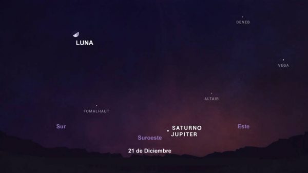 El 21 de diciembre, cuando caiga la noche, el cielo nos regalará uno de los eventos astronómicos más espectaculares del año. Se trata de la gran conjunción de Júpiter y Saturno, un fenómeno en el que estos dos planetas estarán alineados de tal manera que parecerá que forman un planeta doble.