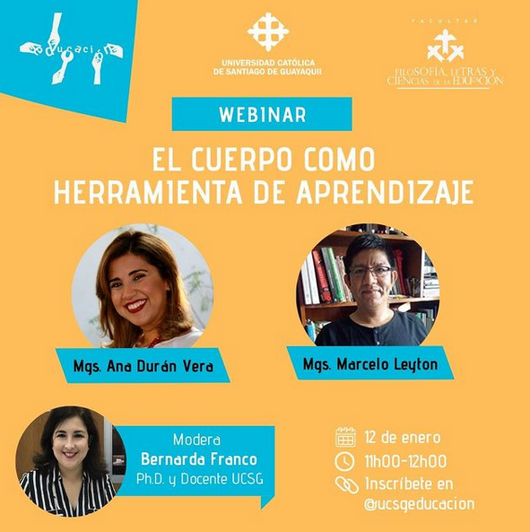 No te pierdas el #Webinar “𝗘𝗹 𝗰𝘂𝗲𝗿𝗽𝗼 𝗰𝗼𝗺𝗼 𝗵𝗲𝗿𝗿𝗮𝗺𝗶𝗲𝗻𝘁𝗮 𝗱𝗲 𝗮𝗽𝗿𝗲𝗻𝗱𝗶𝘇𝗮𝗷𝗲” que la carrera de Educación de la #UCSG te invita.