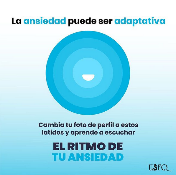 Queremos que seas parte de esta campaña. La ansiedad es algo COMÚN Y REAL con lo que vivimos día a día. Creemos conciencia de lo que #Ansiedad puede ser adaptativa y escuchemos el ritmo de nuestra ansiedad para saber cuando es tiempo de acudir donde un especialista. ¡Cambia tu foto de perfil a nuestros latidos celestes! Conoce más en: @Saludmentalusfq #Ansiedad #AlRitmoDeLaAnsiedad