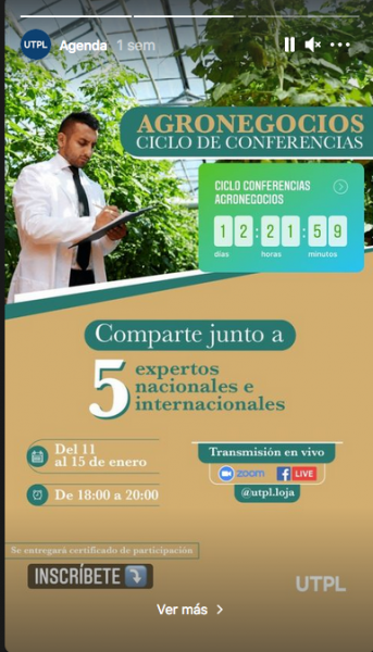 Cinco expertos nacionales e internacionales, ofrecerán desde el 11 al 15 de enero, un clico de conferencias sobre Agronegocios. Más información en www.utpl.edu.ec