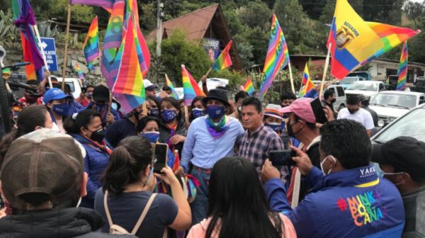 La marcha convocada por Pachakutik y organizaciones sociales que respaldan al candidato Yaku Pérez llegó este sábado 20 de febrero a Chimborazo.