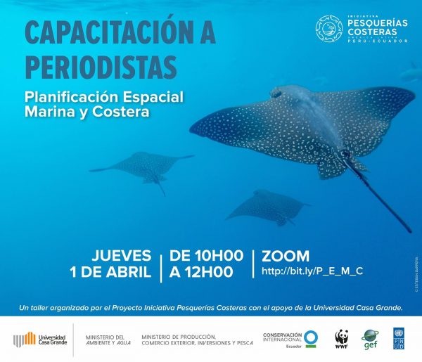 En el 2017, el Estado ecuatoriano elaboró el plan de ordenamiento del Espacio Marino Costero del Ecuador Continental (POEMC), el que permitió divisar la gestión inadecuada de recursos, el ordenamiento territorial deficitario, la gobernanza impropia, además de la carencia de planificación del espacio marítimo y costero. Por ese motivo Conservación Internacional, ONG con presencia internacional, con la colaboración de la Universidad Casa Grande, dictarán el taller “Planificación Espacial Marina y Costera”, este jueves 1 de abril, de 10h00 a 12h00 vía zoom.