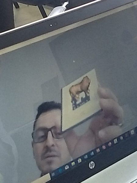 Fig. 3. Escaneo con la cámara web del computador sobre el marcador que muestra un león en 3D con Realidad aumentada (WVILLOTA, 2021)