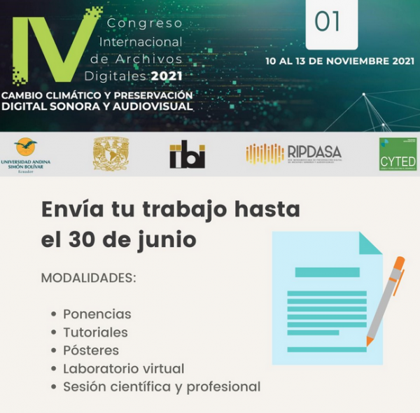Participa con ponencias y otras modalidades en el IV Congreso de Archivos Digitales. Cambio climático y preservación digital sonora y audiovisual, organizado por la @UNAM_MX y la Andina