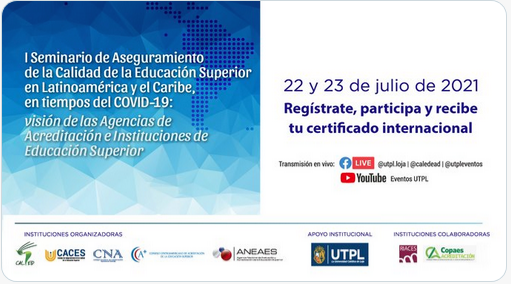 Organizan: @CALED12 @Caces_Ec @ANEAES_Paraguay @CNA_AcreditaCol CCA-Panamá @utpl @riaces_org y @CopaesMx