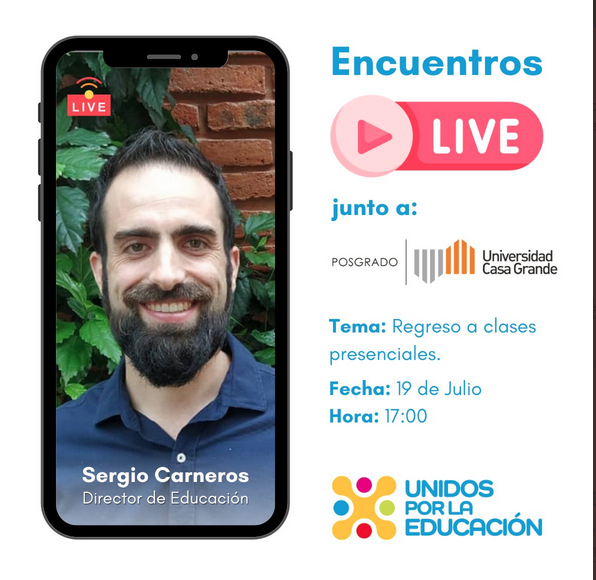 La Facultad de Posgrado de Universidad Casa Grande y Unidos por la Educación los invitan a este encuentro donde conversaremos sobre el retorno a la presencialidad en los centros educativos.