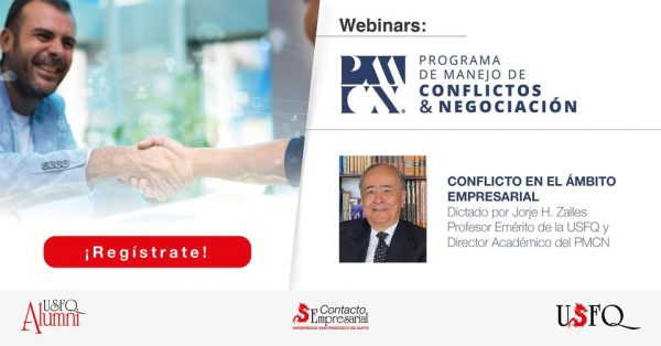 El Programa de Manejo de Conflictos y Negociación, PMCN® invita a participar en la serie de webinars sobre conflicto en el ámbito empresarial dictados por Jorje H. Zalles, Profesor Emérito de la USFQ y Director Académico del PMCN®.