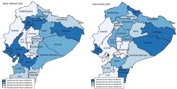 En la Amazonía históricamente las provincias han expulsado población de sus áreas rurales, se evidenció procesos de urbanización en las provincias Sucumbíos y Zamora Chinchipe figurando como polarizadoras de inmigración, movimientos migratorios con base en la desigualdad marcada por la actividad económica y la existencia de ganadores y perdedores en procesos de desarrollo.