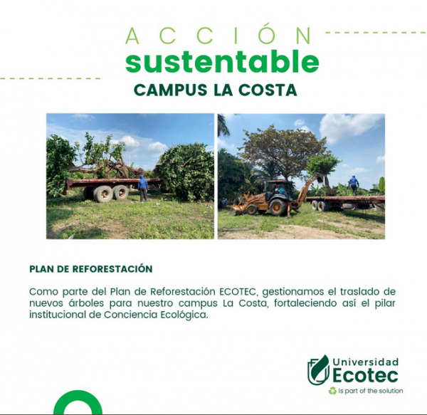 Como parte del plan de reforestación ECOTEC se gestiona el traslado de nuevos árboles para el campus La Costa.