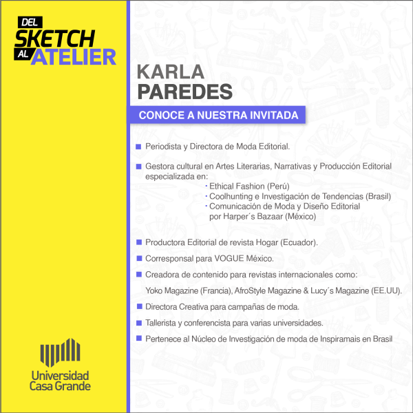Sé parte de esta interesante conversación y descubre un poco más sobre las diversas oportunidades que tienen los diseñadores textiles, en el conversatorio organizado por la Universidad Casa Grande