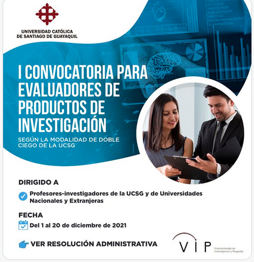 La Universidad Católica de Santiago de Guayaquil abre la convocatoria para Evaluadores de Productos de Investigación, según modalidad de Doble Ciego.