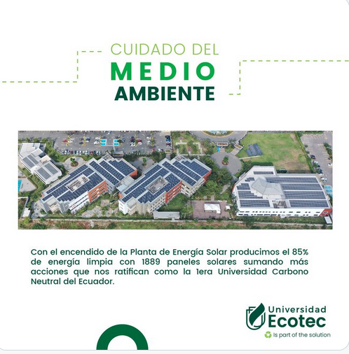 La operatividad de su Planta de Energía Solar es una muestra más de que la Universidad Ecotec está en el camino correcto, el de la Transición Ecológica.