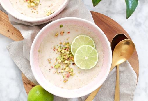 El resultado es una auténtica delicia, con pequeños trozos de pistacho y un toque cítrico que podemos incluso aumentar incluyendo el zumo de una lima adicional. Espero y deseo que el nuevo año sea amable con vosotros y no puedo menos que agradecer todo lo compartido en este último año repleto de recetas ricas y saludables. Nunca nos cansaremos de ponéroslo fácil en el camino hacia una alimentación más consciente y saludable. ¡Feliz año nuevo! Artículo de la ABC
