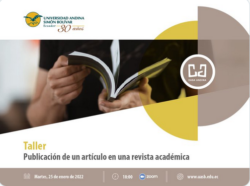 Inscríbete en el taller de la @CasaAndinaUASB “Publicación de un artículo en una revista académica”. Están dirigidos a estudiantes, docentes, investigadores y funcionarios de la @uasbecuador