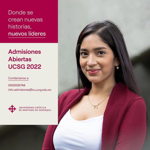 La Universidad Católica de Santiago de Guayaquil abre sus admisiones para el 2022. Con ello, emite la oportunidad para que los interesados formen parte de una trayectoria de 60 años construyendo verdaderos líderes, capaces de afrontar todos los desafíos. La universidad cuenta con 8 facultades y 36 carreras para elegir.