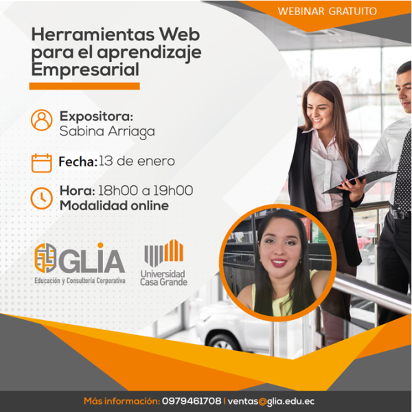 Este jueves, la Universidad Grande desarrollará a las 18:00, un webinar gratuito sobre herramientas web para el aprendizaje empresarial. Con este taller los interesados podrán sacar provecho de las nuevas herramientas que ayudarán a crecer emprendimientos o negocios.